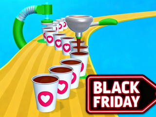 Black Friday Coffee Shopping is a parkour game that takes place on Black Friday. You are a waiter in a coffee shop and you need to collect cups and fill them with coffee and pack the coffee cups. Then serve the finished coffee to the customers in the store. You can unlock different coffee cups and different waiters. The more coffee you make, the better the store's profit will be!
